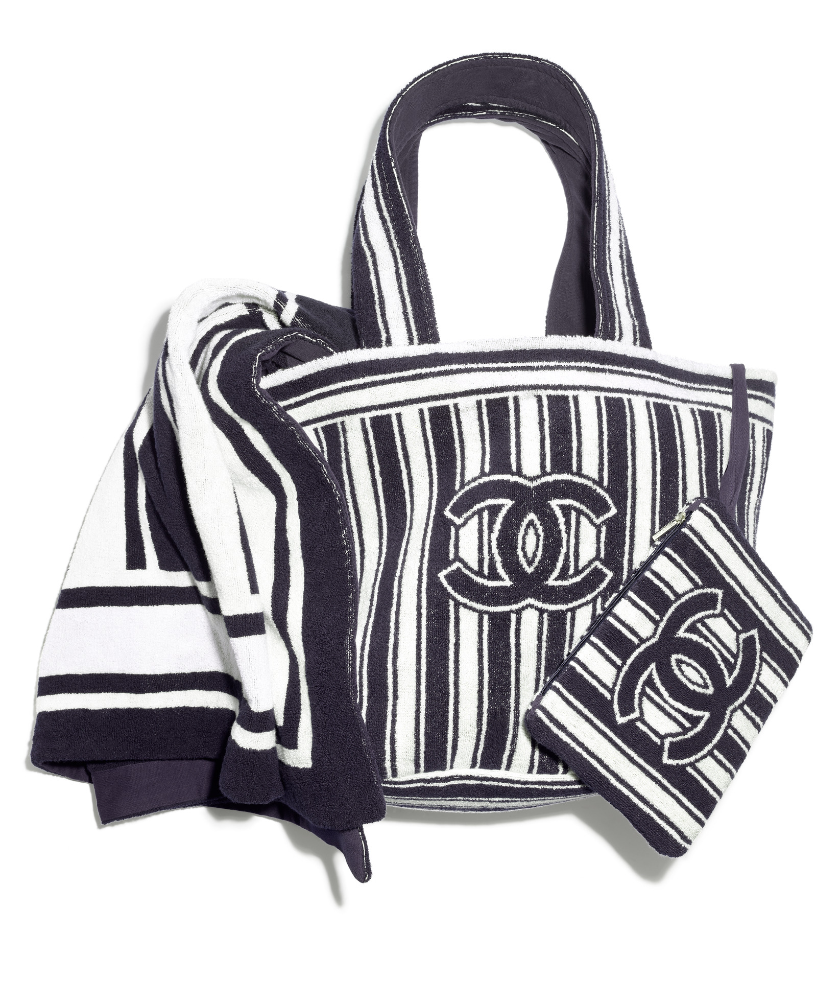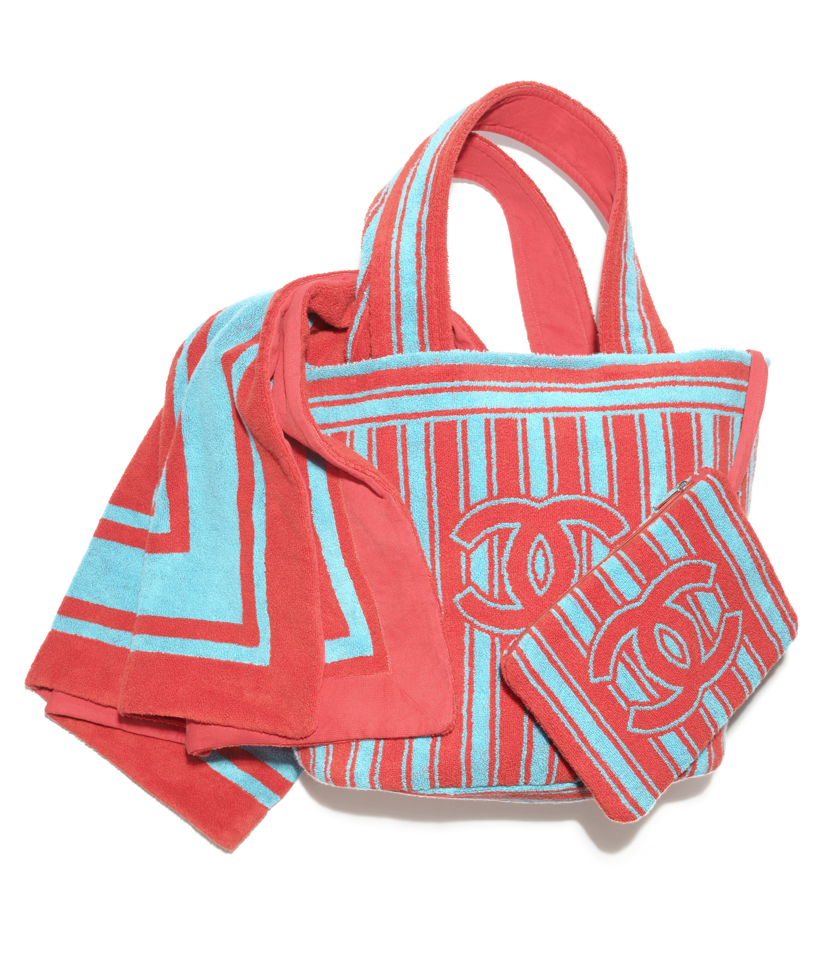 紅藍色條紋雙C LOGO沙灘組合包;藍白色條紋雙C LOGO沙灘組合包