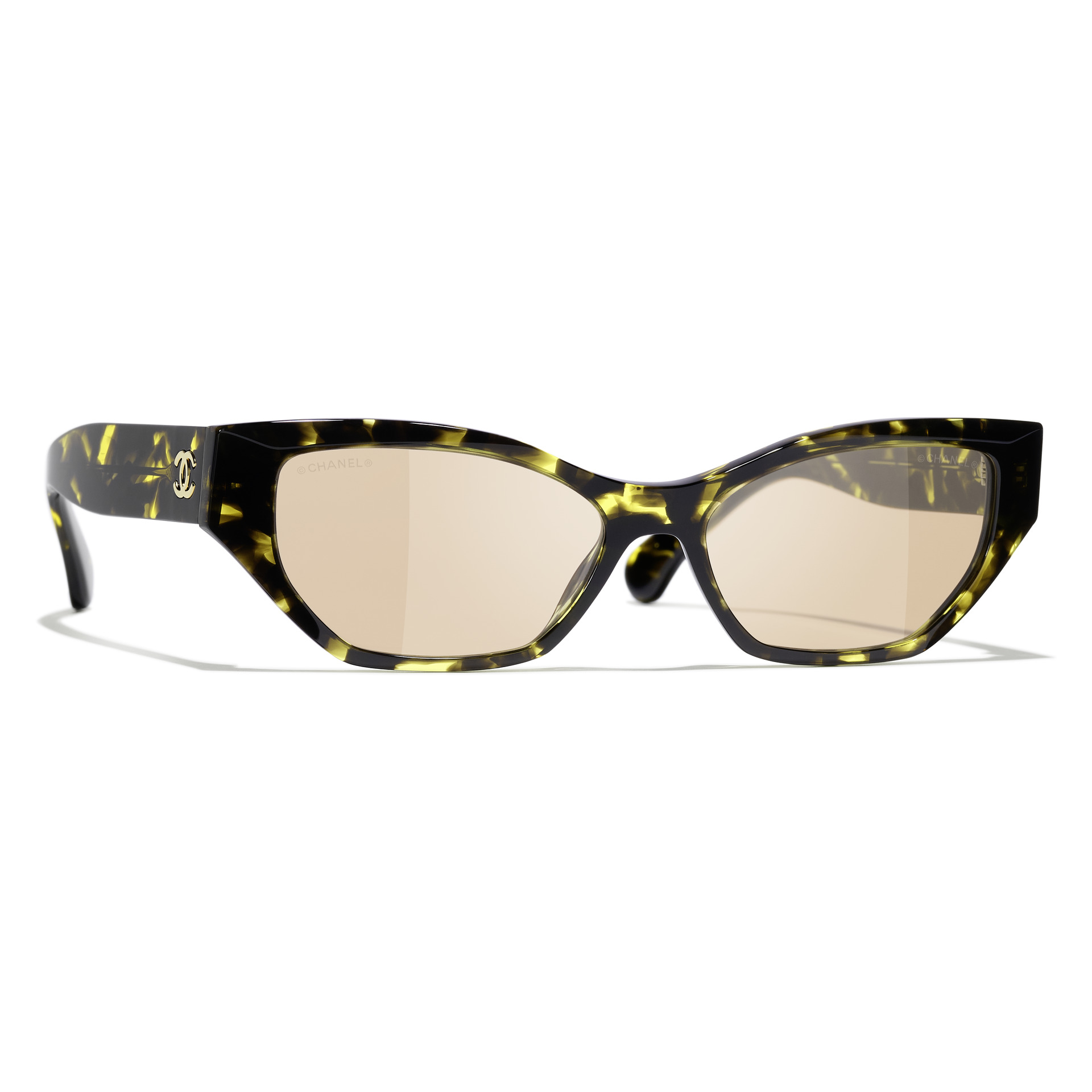 黃黑色雙C LOGO貓眼型太陽眼鏡;淡棕色雙C LOGO貓眼型太陽眼鏡