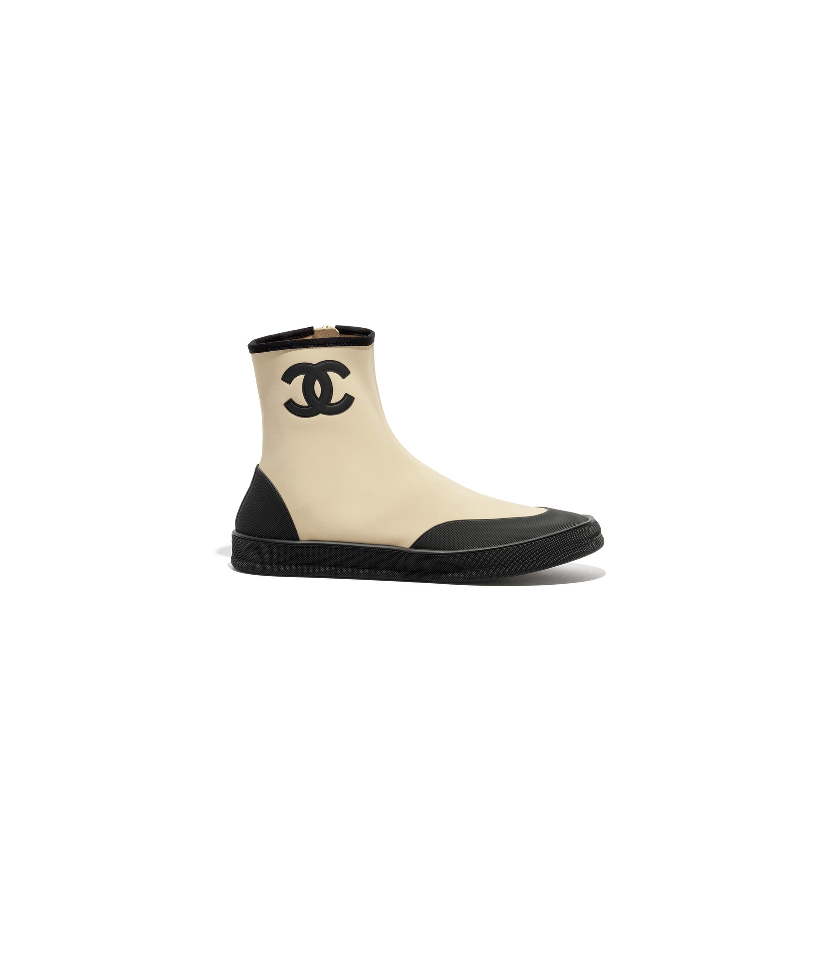 黑色飾以白色緄邊雙C LOGO瑪莉珍鞋;米黑色雙C LOGO踝靴
