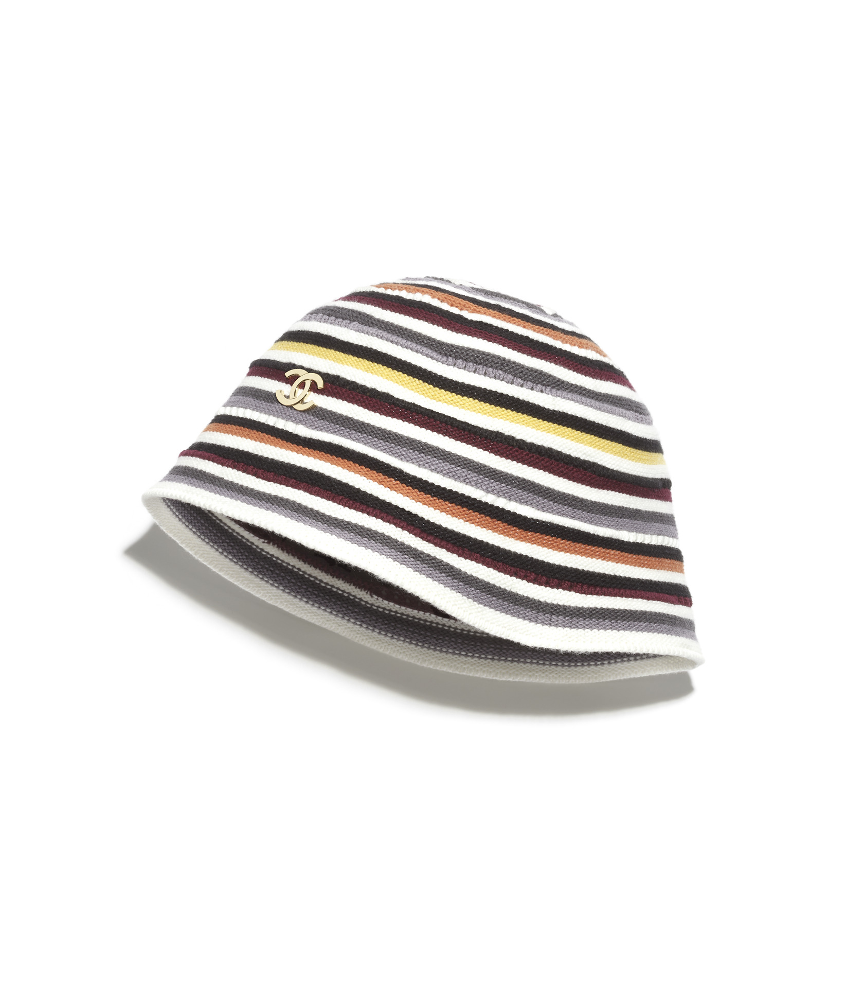 多彩條紋雙C LOGO鐘型帽;淺藍色飾以人魚圖樣絲巾