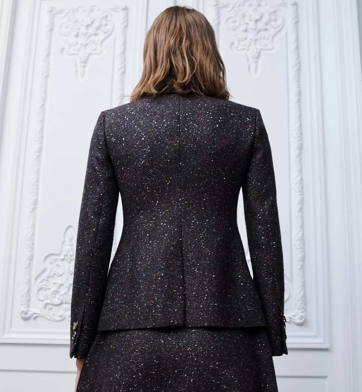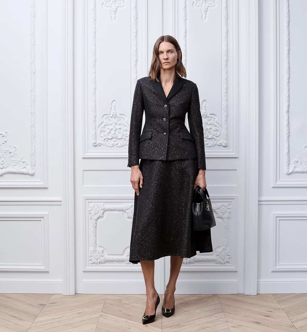 講到 Dior 絕對不能不提經典的 Bar Jacket,Jonathan Anderson 這次在沙漏版型基礎上,結合了帶有垂墜感的高級面料與亮片刺繡,讓原本可能略顯正式拘謹的外套,多了一份現代女性的從容。