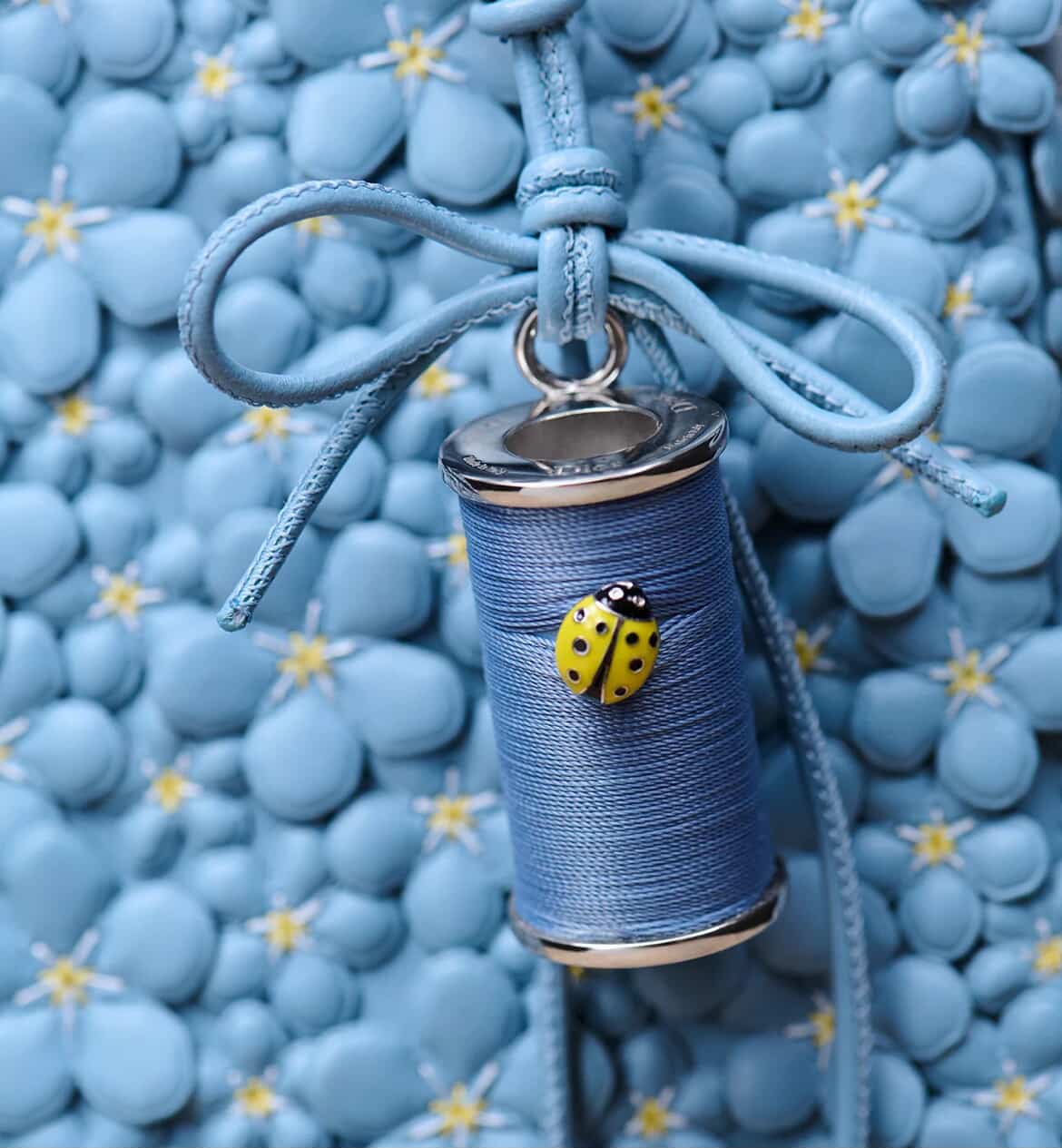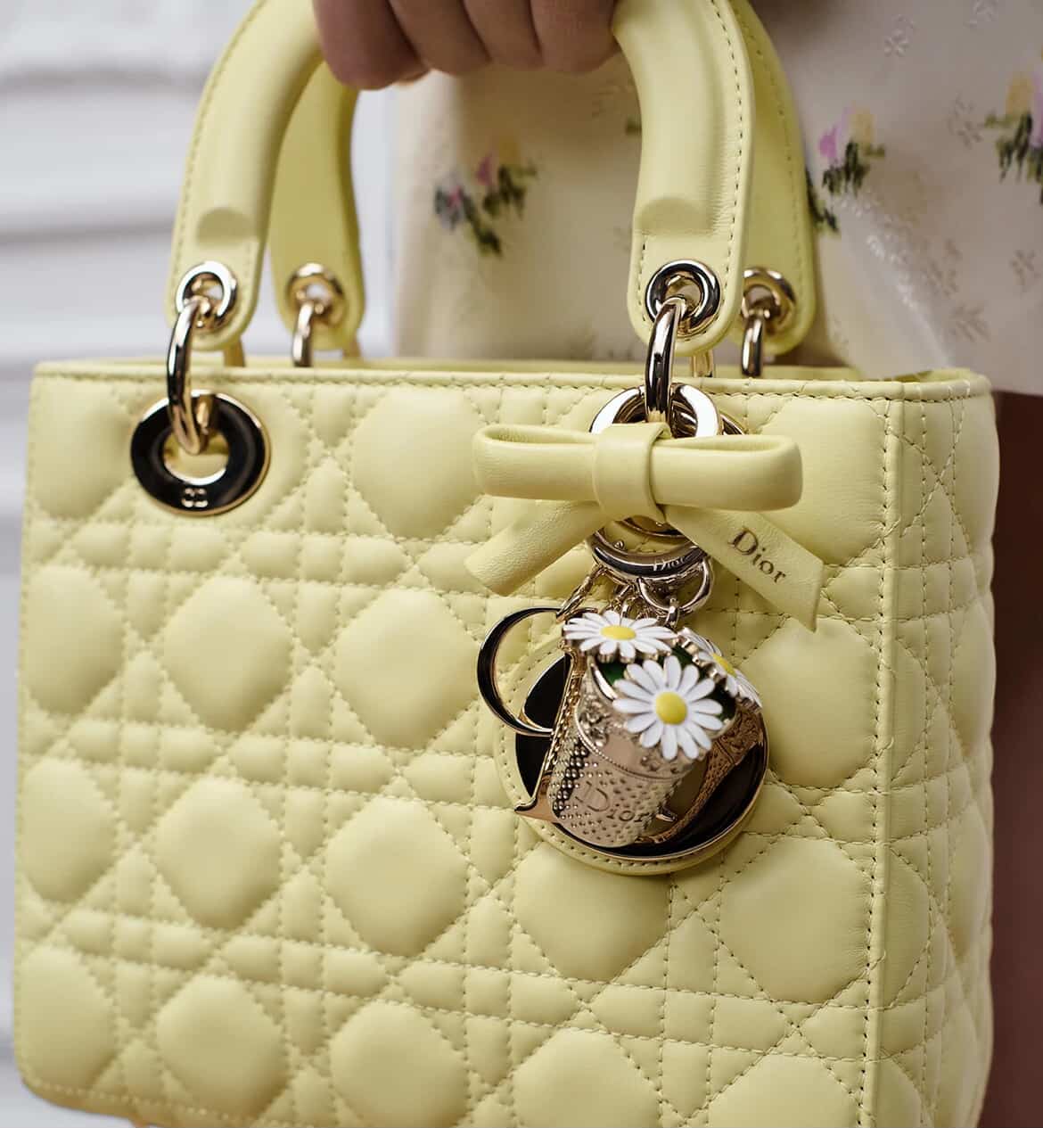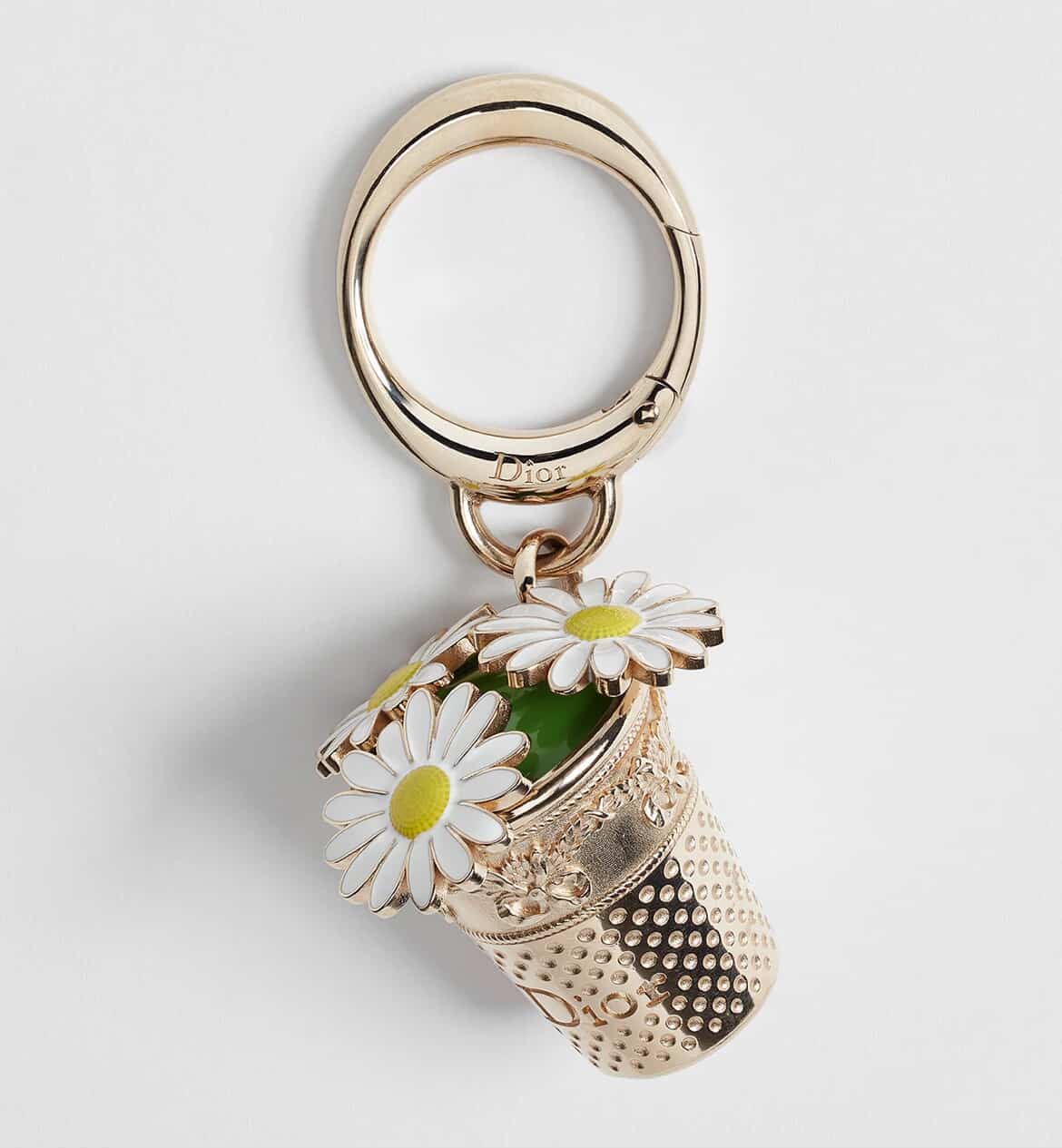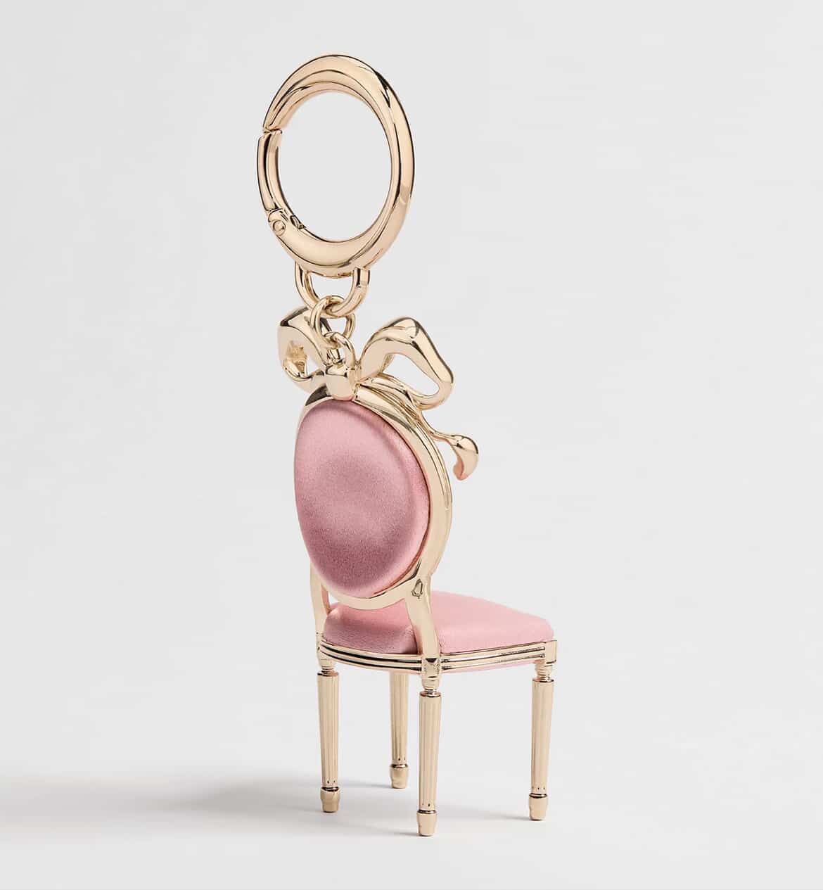 Jonathan Anderson 這次在吊飾裡藏了充滿童趣的「微型宇宙」,幾款話題包款吊飾絕對是這季的吸睛焦點,「Jardin D’Atelier 吊飾」用金屬頂針和拼色漆面雛菊向高訂工坊致敬;「Studio Couture 吊飾」則是把藍色小羊皮蝴蝶結、銀色線軸跟一隻帶來好運的黃黑瓢蟲串在一起,超級可愛;還有「Dior Icon 吊飾」直接把 Songe Pink 的緞面 Médaillon 圓背椅變成迷你版,隨意掛在包包上就能增添精緻感。