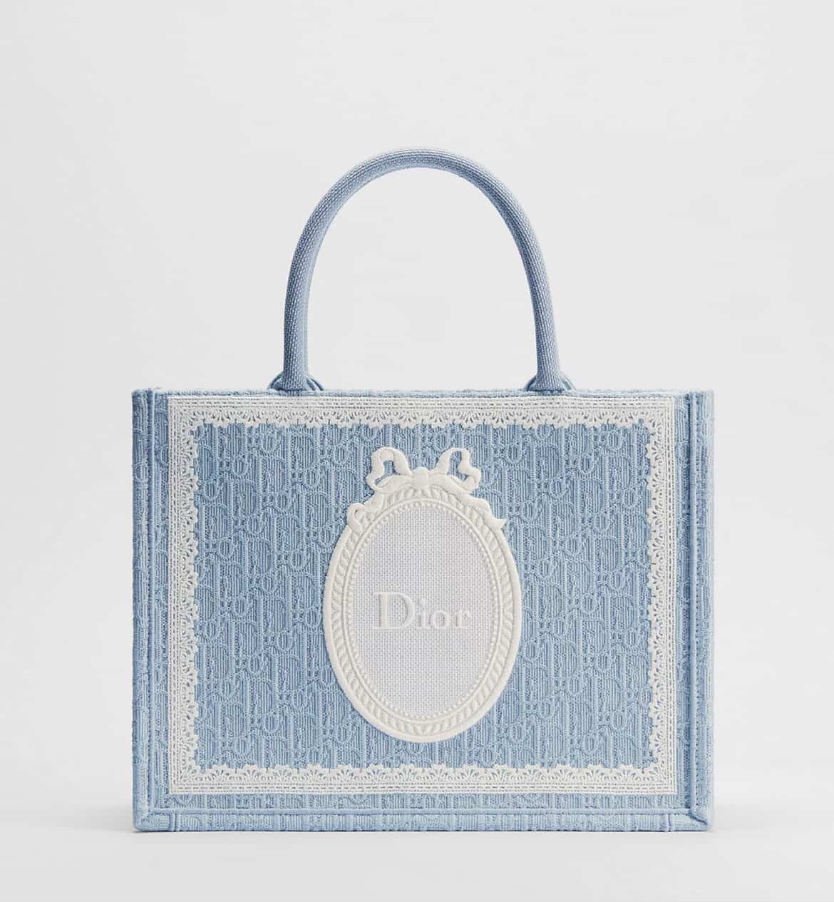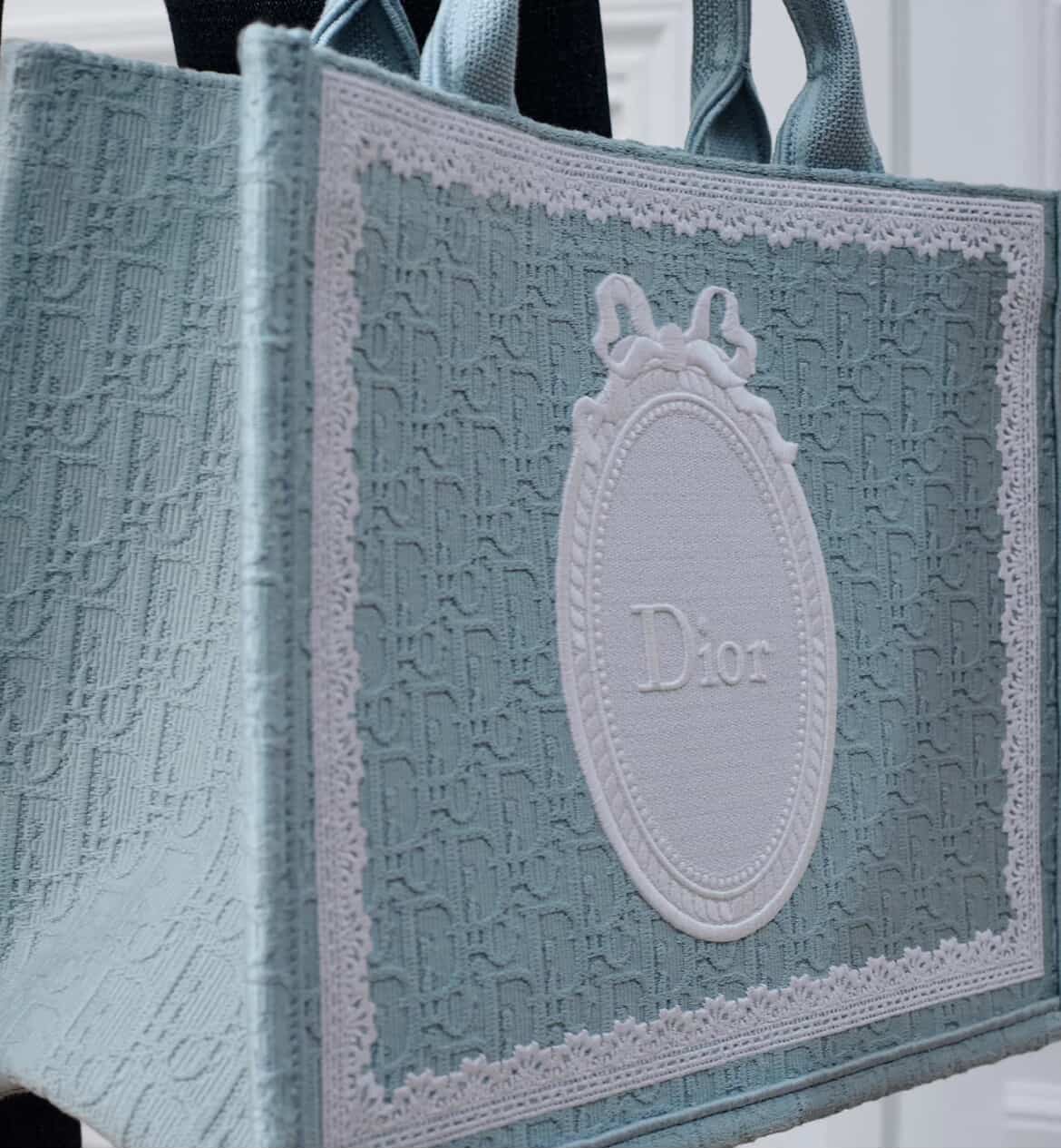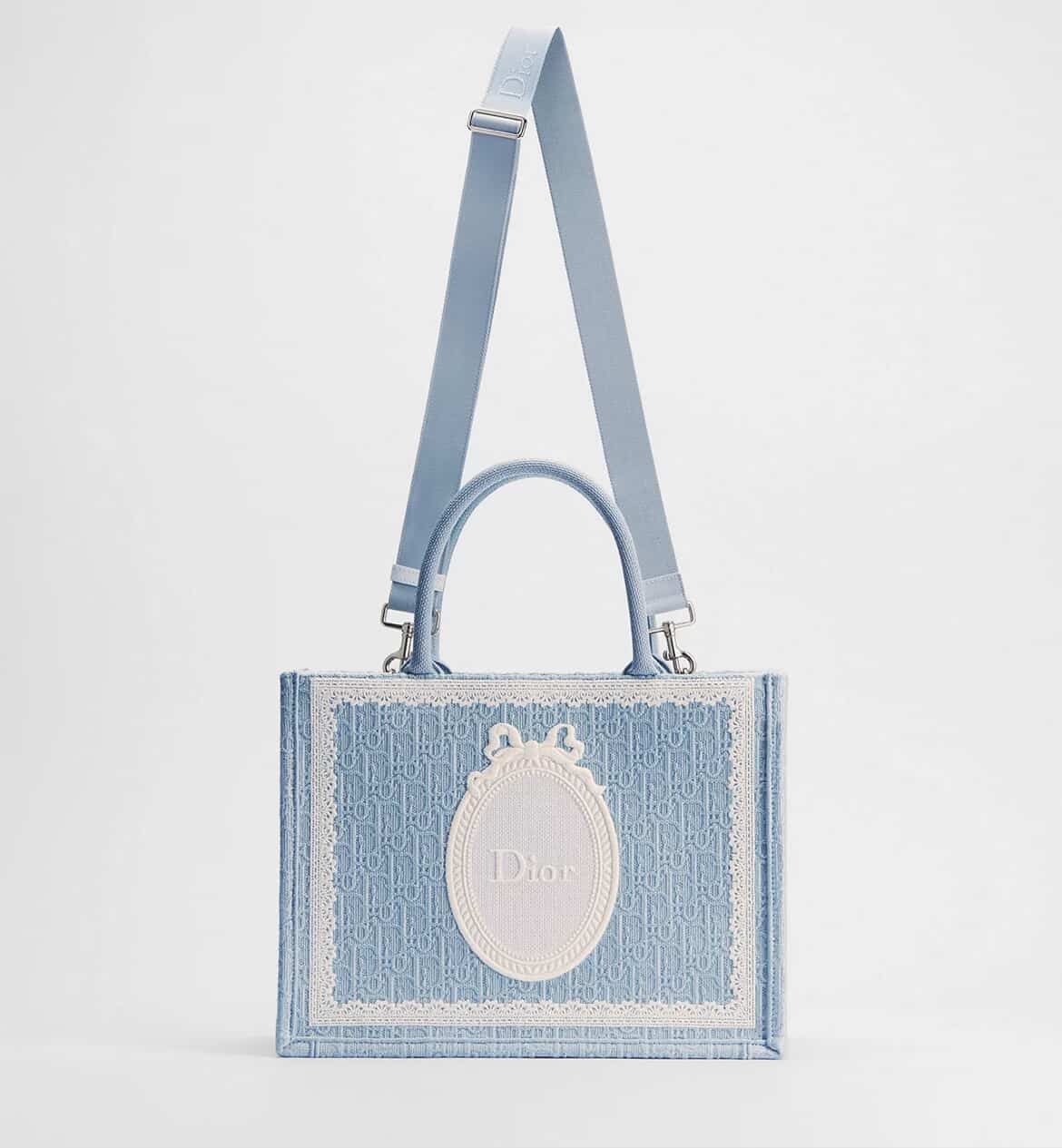 這次「Dior Book Tote 中型托特包」也換上了新衣,絕美的蔚藍色 Dior Oblique 刺繡,被細緻的白色蕾絲與 Dior Médaillon 圓背椅圖騰包覆,把 18 世紀的法式沙龍美學跟現代實用性結合,拎在手上就像帶著一件微型藝術品出門。