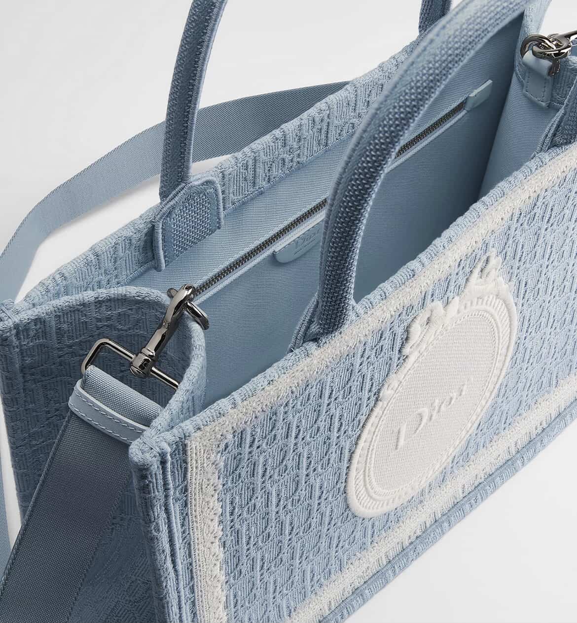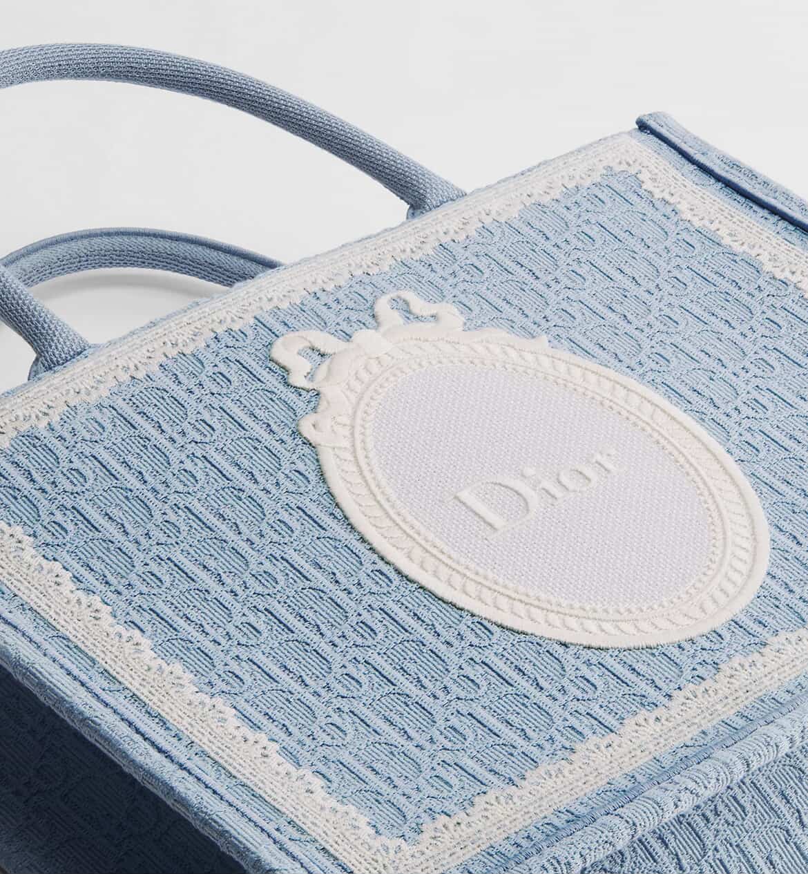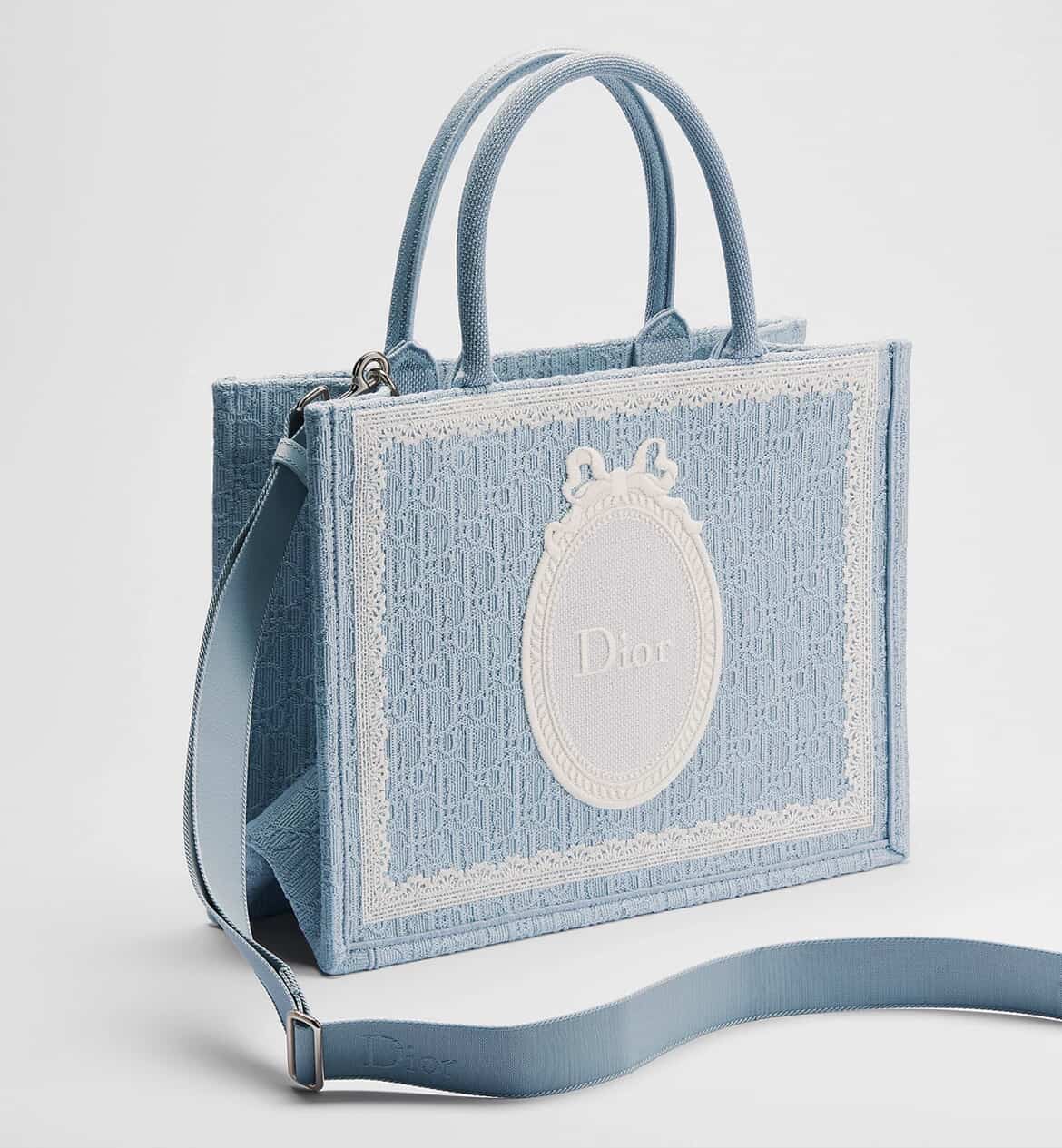 這次「Dior Book Tote 中型托特包」也換上了新衣,絕美的蔚藍色 Dior Oblique 刺繡,被細緻的白色蕾絲與 Dior Médaillon 圓背椅圖騰包覆,把 18 世紀的法式沙龍美學跟現代實用性結合,拎在手上就像帶著一件微型藝術品出門。