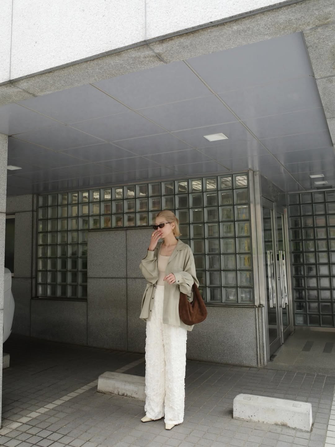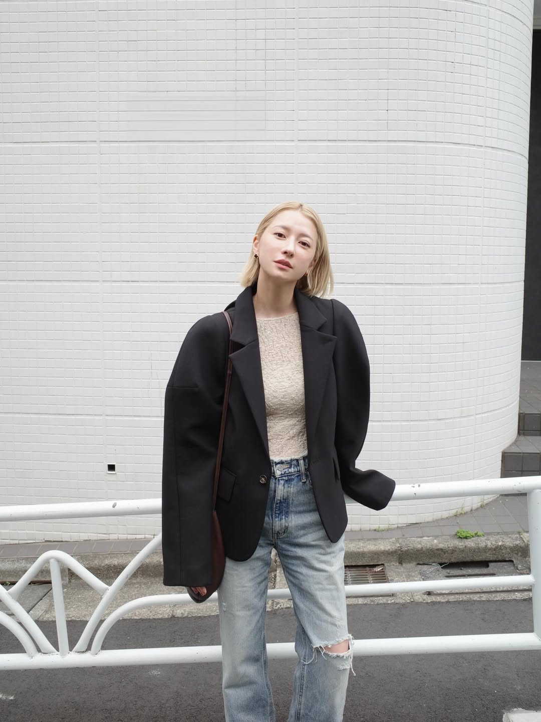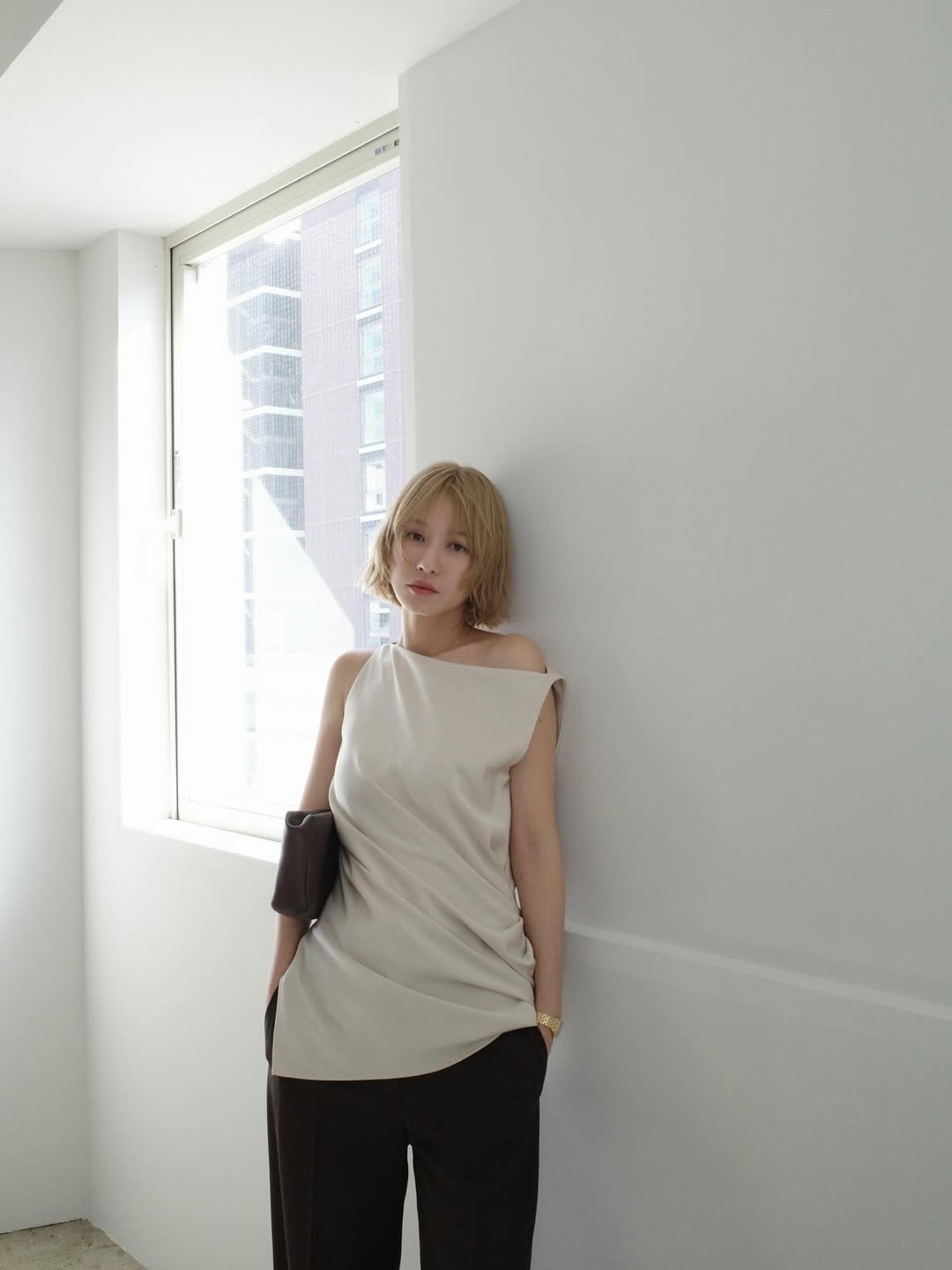 當松本惠奈穿上洋裝時,有了淺金短捲髮的加持,自帶輕柔飄逸氣息;換上褲裝或較中性的單品時,又能瞬間變得俐落帥氣。