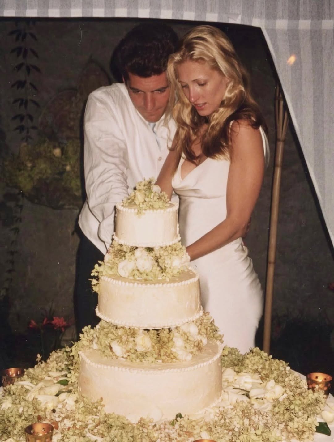 而說到她最為人津津樂道的經典造型,莫過於 1996 年的那場世紀婚禮。當年尚未出名的設計師 Narciso Rodriguez 為她量身打造一襲白色細肩帶緞面婚紗,以極簡線條搭配貼身剪裁設計,還有著面料自然垂墜感,整體簡約又不失流動感,完美呈現出現代優雅,震驚了時尚界。