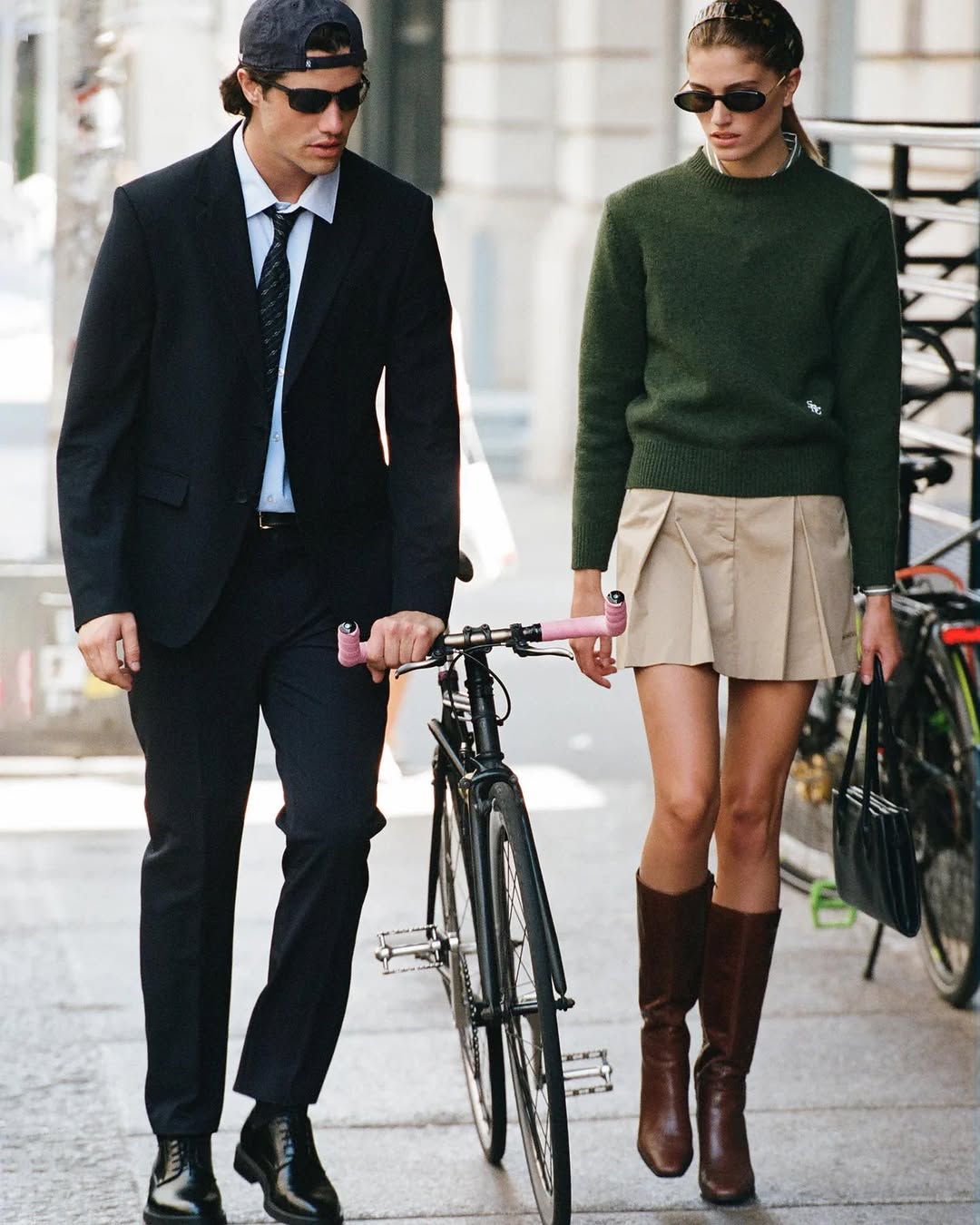 看看當年 Carolyn Bessette 和 John F. Kennedy Jr. 的街拍照,放到今日依舊時髦。