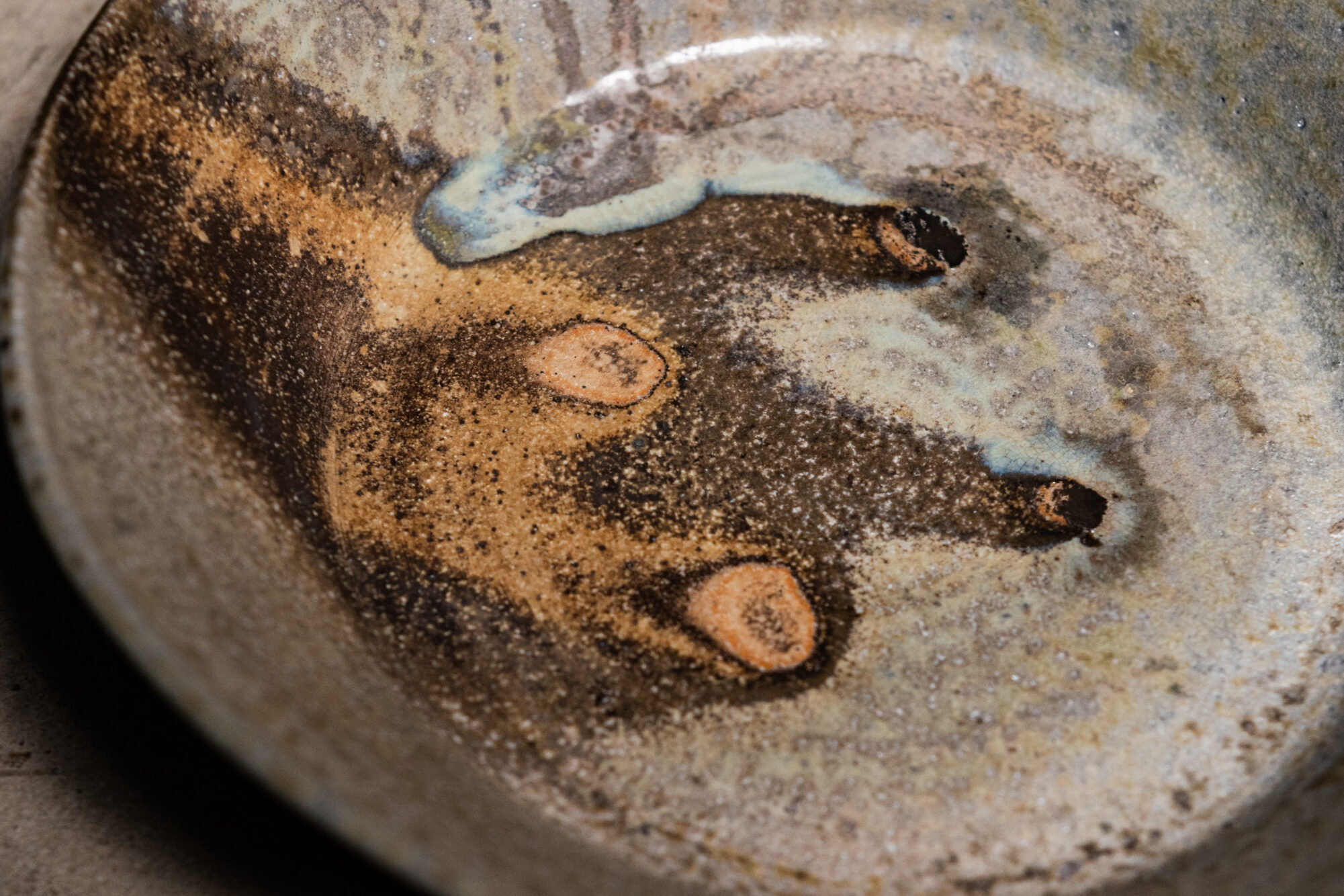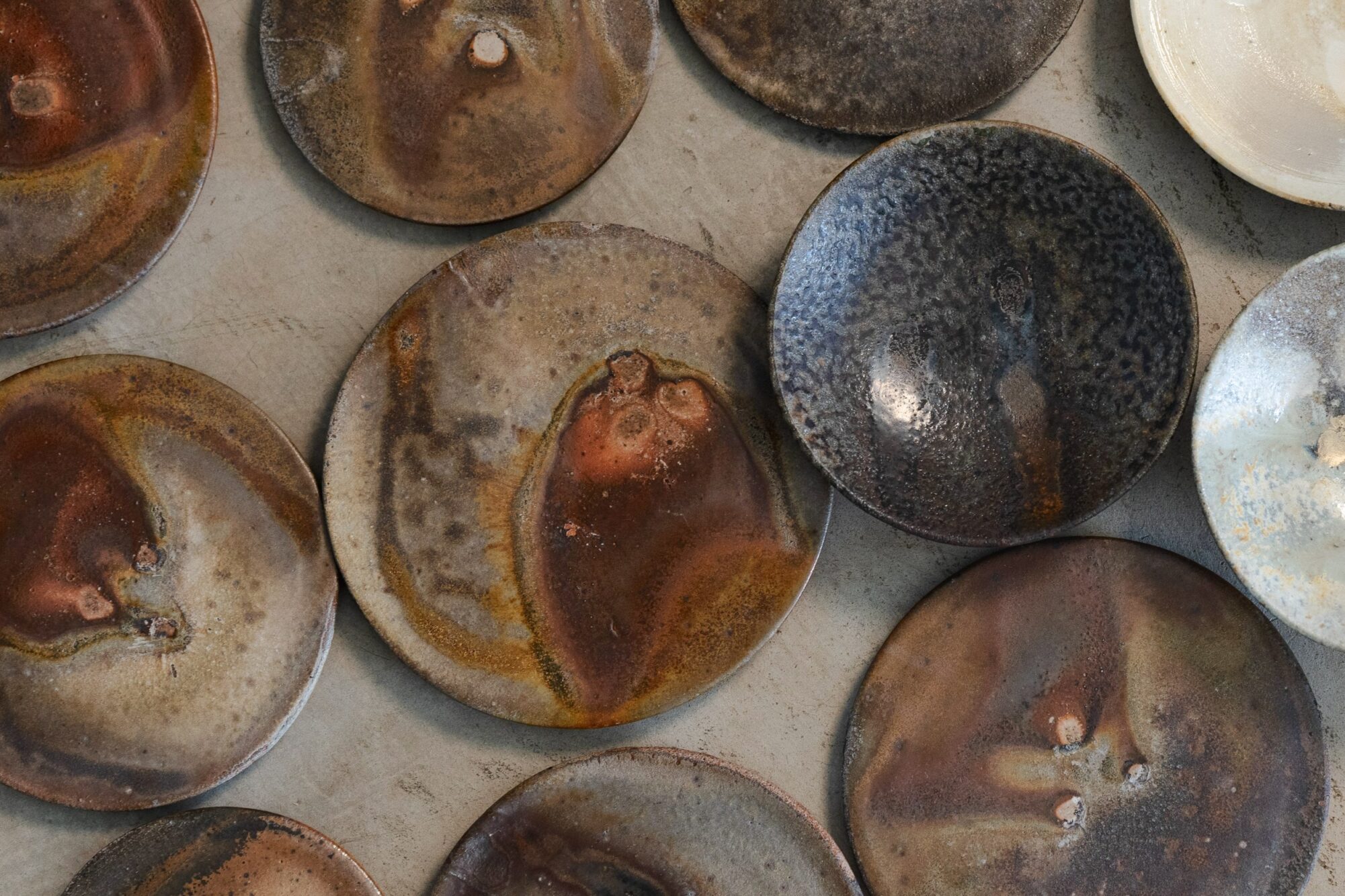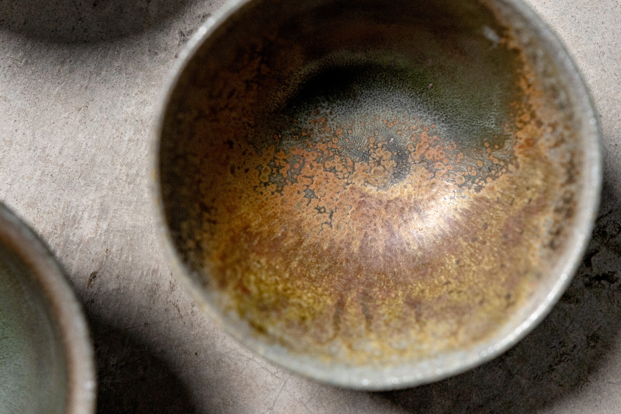 在柴燒的過程中,有些杯子明明沒有上釉,卻因為窯裡空氣的流動,意外沾染了旁邊器皿的天目釉,留下了神秘的自然結晶;有些土拉得太薄,在高溫下變了形。
