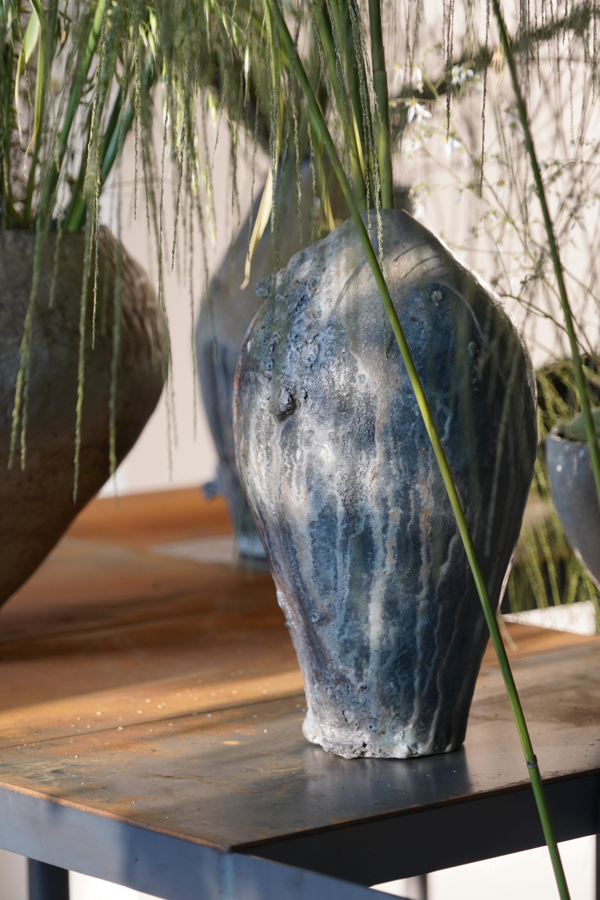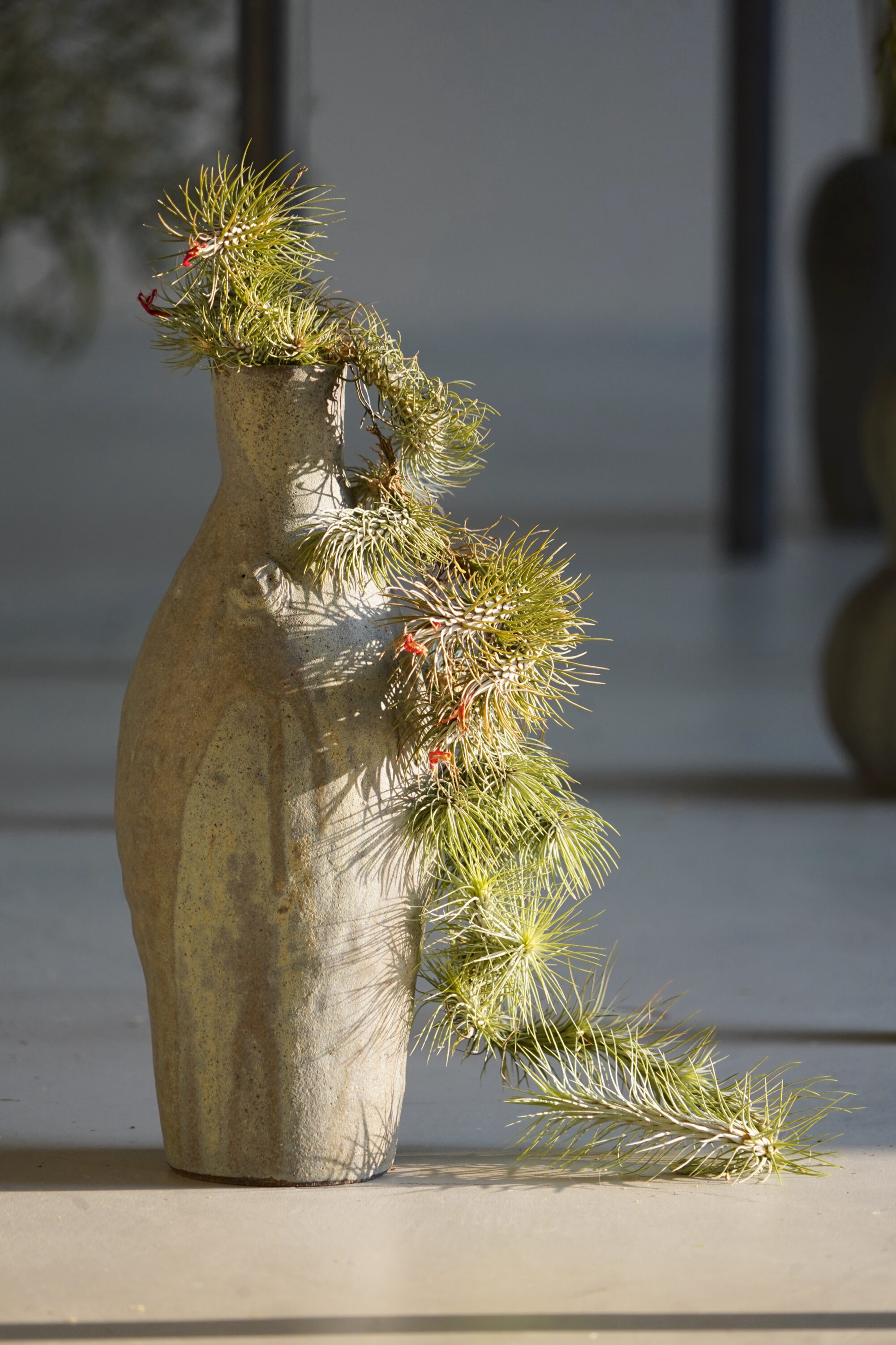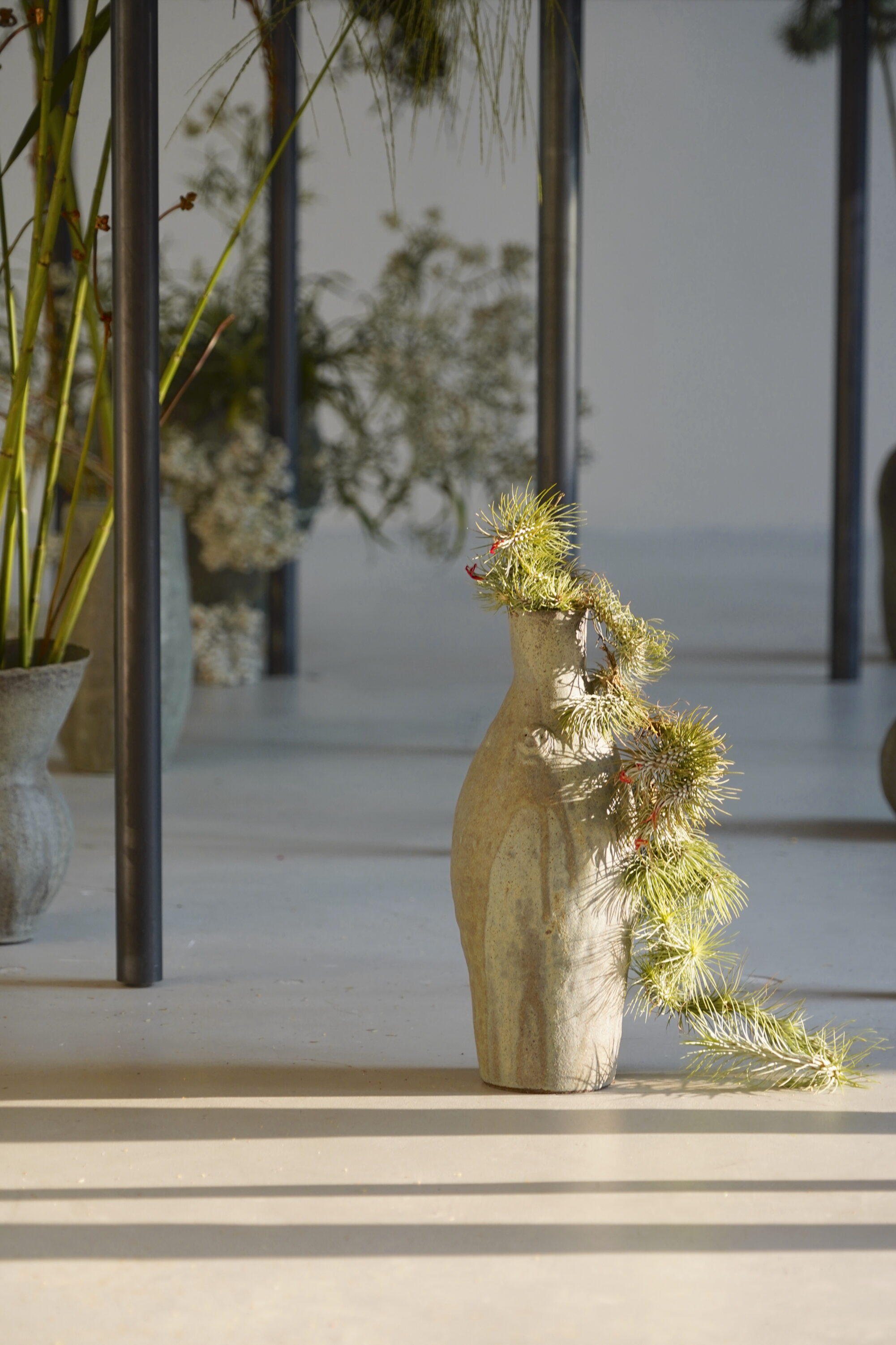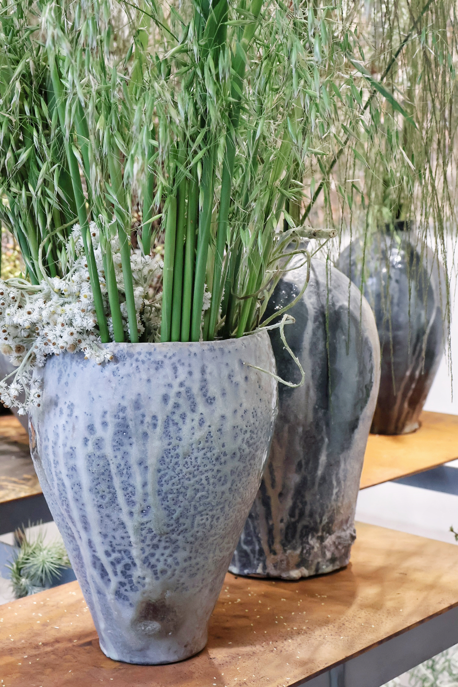 為了讓走進藝廊的人,也能感受到柴燒的生命力,這次的《餘靜》展覽,再度邀請了植物藝術家廖浩哲來操刀空間設計。