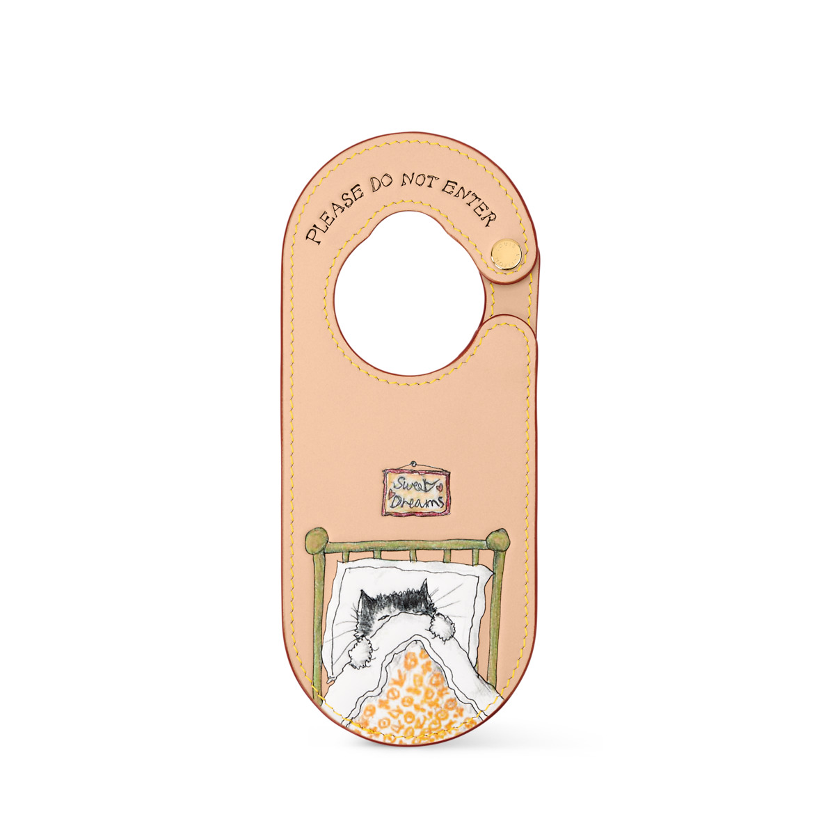 延續 Grace Coddington 同行系列的可愛度,這款 Sleeping Cat Door Sign 絕對會讓所有貓奴一秒融化!設計上幽默結合了飯店「請勿打擾」的門牌造型,上方蜷縮著一隻正安心熟睡的貓咪,實在太可愛,就算家裡已經有了一隻一樣傲嬌又愛睏的主子,出門時看見手袋上這隻輕閉雙眼的小傢伙,還是好療癒。