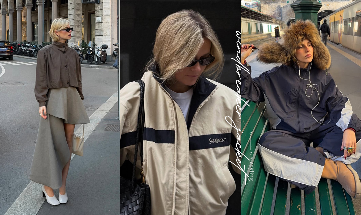 機能防風外套從貼身剪裁轉向寬鬆、短版或帶有抽繩設計的款式,延續 80、90 年代復古風潮,比如撞色拼接,偶有高領、收腰等設計,穿起來自帶一股復古街頭氛圍。